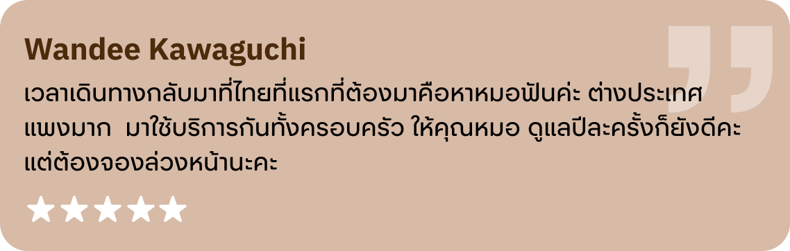 ก่อตั้งขึ้นเพื่อให้ทุกคน ตั้งแต่เด็กไปจนถึงผู้ใหญ่ สามารถเข้าถึงการรักษาทางทันตกรรมที่มีคุณภาพ เราให้บริการมาอย่างต่อเนื่องตั้งแต่ปี พ.ศ. 2535 รวมกว่า 30 ปี ปัจจุบันดำเนินการโดยทันตแพทย์รุ่นที่ 2 ของครอบครัว ซึ่งยังคงยึดมั่นในแนวทางการรักษาที่ดีที่สุดในราคาที่คุ้มค่า พร้อมทีมทันตแพทย์เฉพาะทางของเรา เพื่อดูแลและใส่ใจสุขภาพช่องปากของคุณอย่างเต็มที่